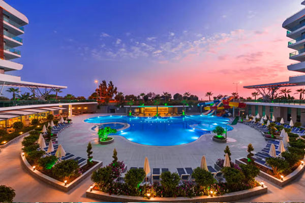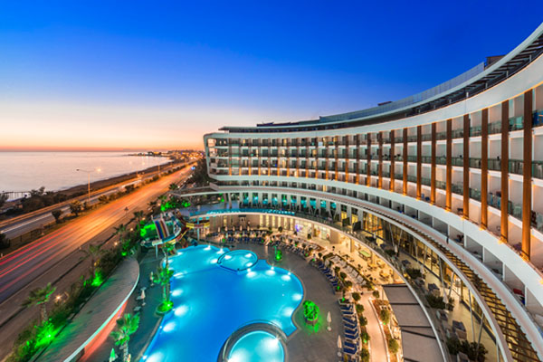The five-star Xoria Deluxe Hotel is located on the beautiful Alanya Beach in Antalya. The hotel is located a short walk from the city center. With plenty of amenities and comfortable rooms, the hotel is a great choice for families looking for a fun beach vacation in Turkey.